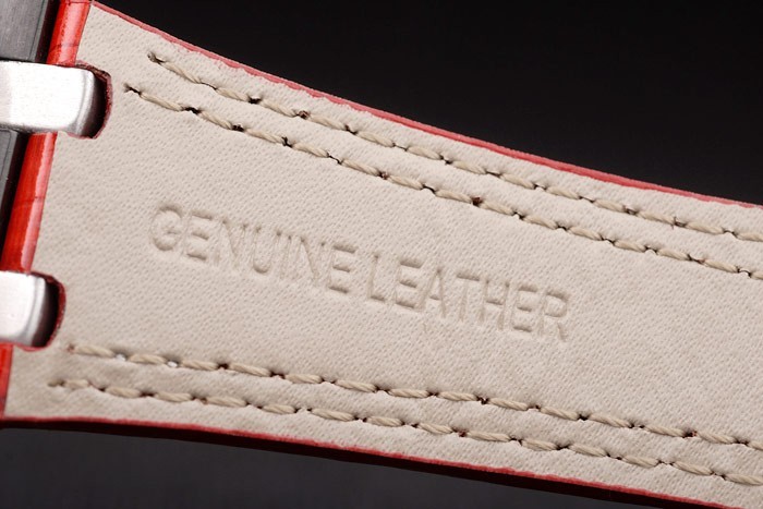 Bracelet de acero inoxidable: El calor en relieve correa de piel de cocodrilo rojo Audemars Piguet con costuras de color blanco doble y Audemars Piguet grabado de iones de chapado plegable en clasp