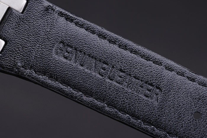 Bracelet: correa de piel de cocodrilo Negro con costuras en hilo blanco y en relieve de calor nombre de Audemars Piguet y el logotipo y un Audemars Piguet inscriben acero inoxidable flip-sobre el gancho clasp
