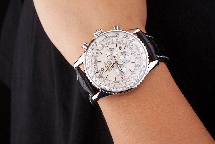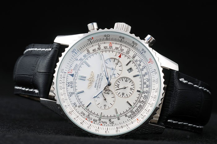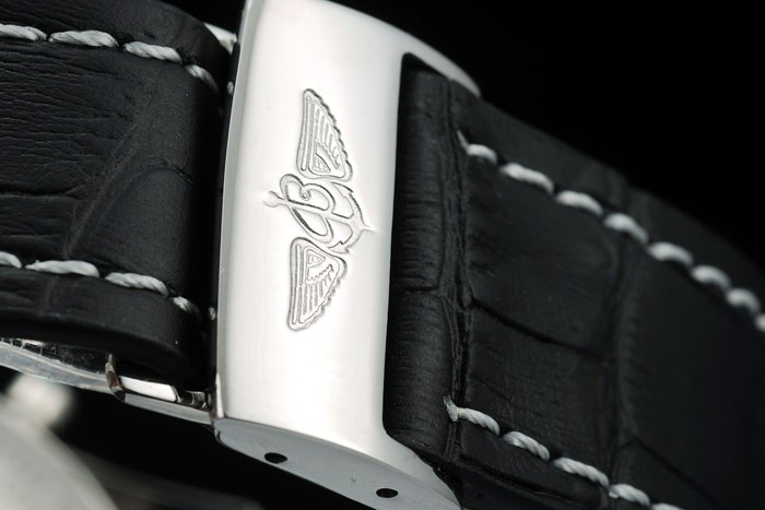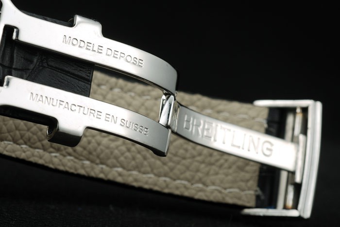 Bracelet de acero inoxidable: correa de piel de cocodrilo Negro con la patente costuras de color blanco y el calor en relieve grabados Breitling y acero inoxidable grabado doblar por la broche con el logotipo de Breitling en top