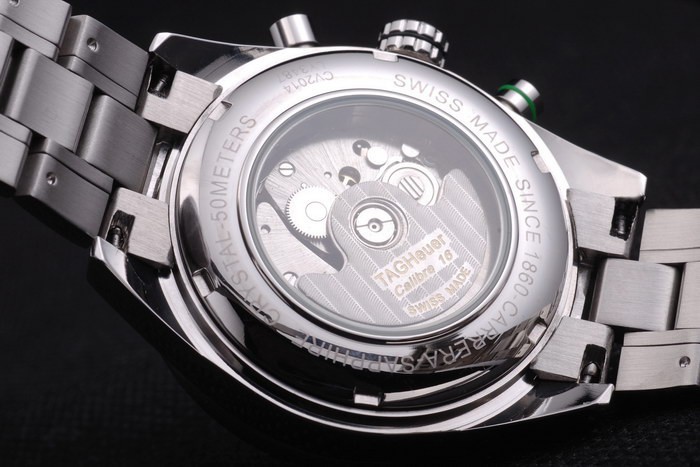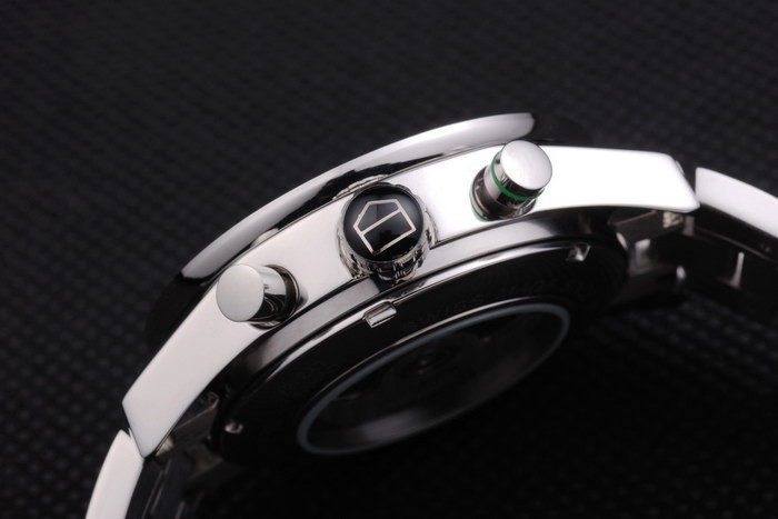 Crown: pulido corona de acero inoxidable con la etiqueta el logotipo Heuer y dos coronas más pequeños a cada side