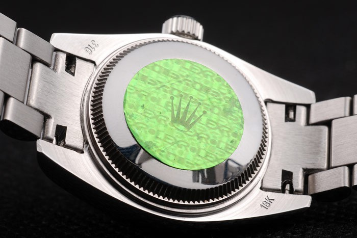 Volver: Acero inoxidable empuje en caso de vuelta con el verde Rolex logo stamp