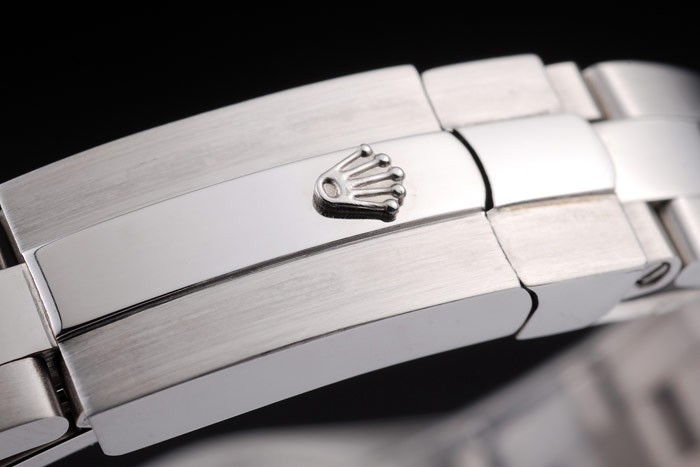 Bracelet acero inoxidable cepillado de acero inoxidable pulsera de eslabones con Rolex grabado plegable en cierre desplegable que muestra la longitud Rolex logo