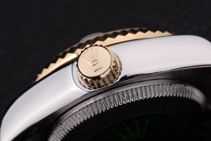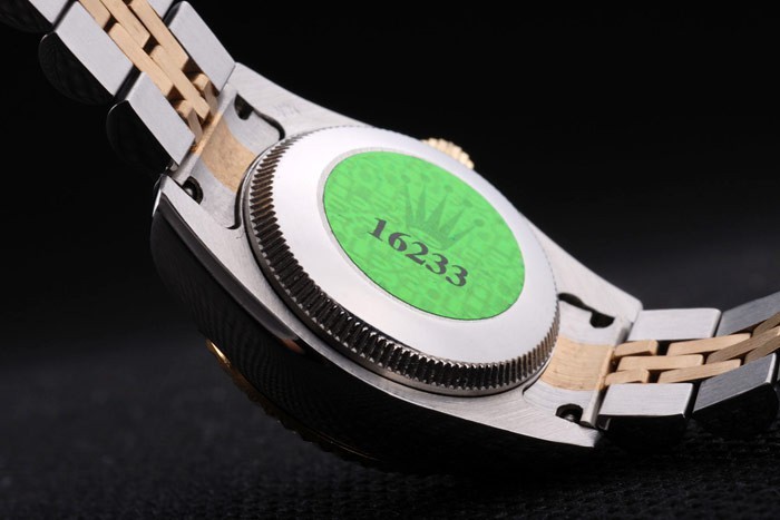 Volver: Caja de acero inoxidable de empuje en la parte trasera con el verde Rolex logo stamp