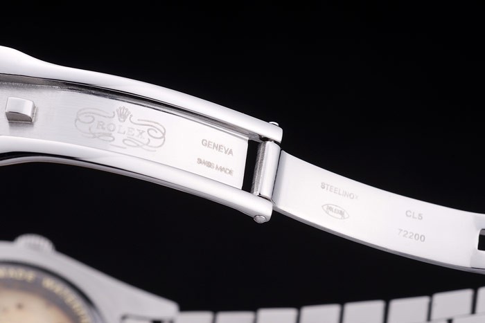 Bracelet: cepillado y pulido brazalete de eslabones de acero inoxidable con el logotipo de Rolex oculto Longitud clasp