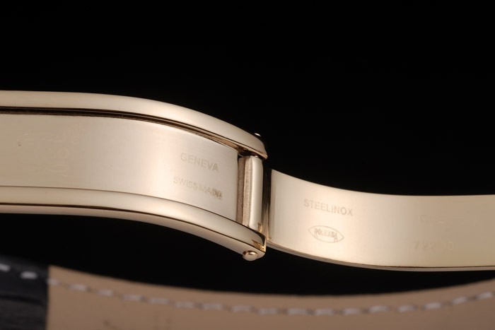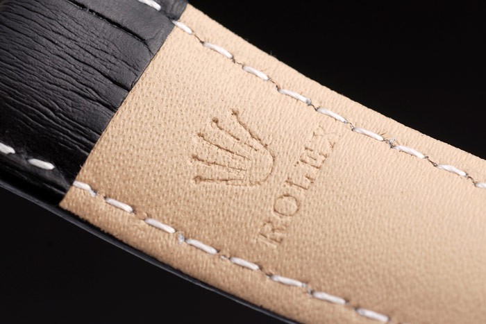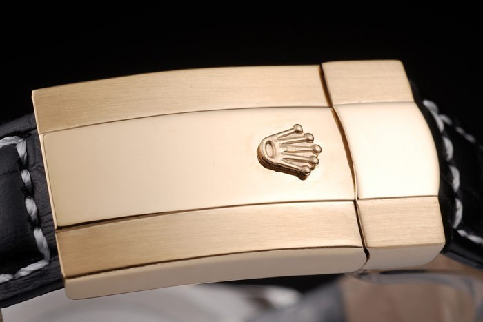 Bracelet acero inoxidable cepillado: correa de cuero Negro cocodrilo con Rolex grabado 18k oro amarillo plegable en cierre desplegable que muestra la Rolex logo