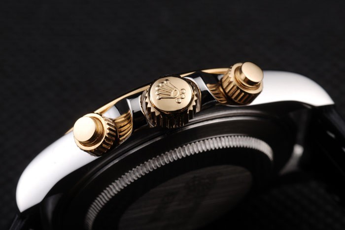 Crown: 18k corona amarilla calado de oro con el logotipo de Rolex y coronas más pequeñas a cada lado de it