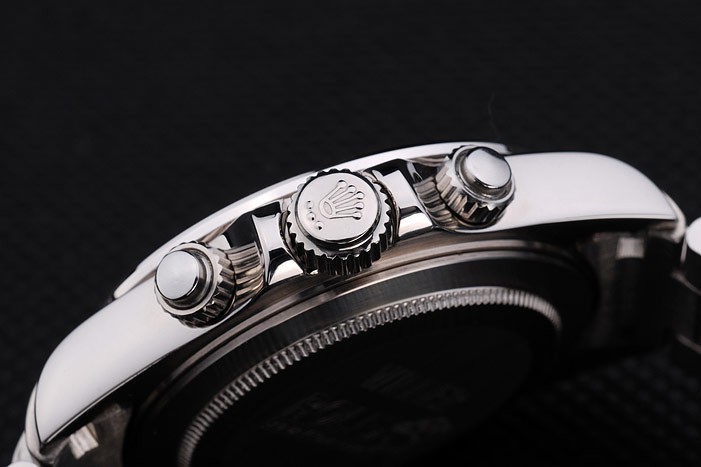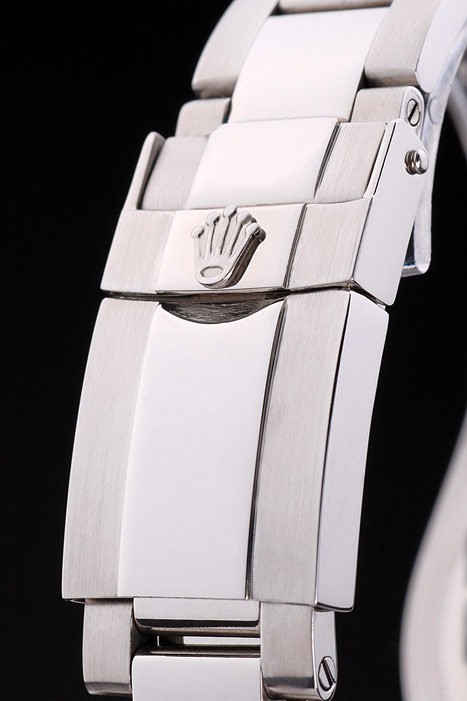 Crown: acero inoxidable pulido corona de calado con el logotipo de Rolex y dos coronas adicionales a cada lado de it