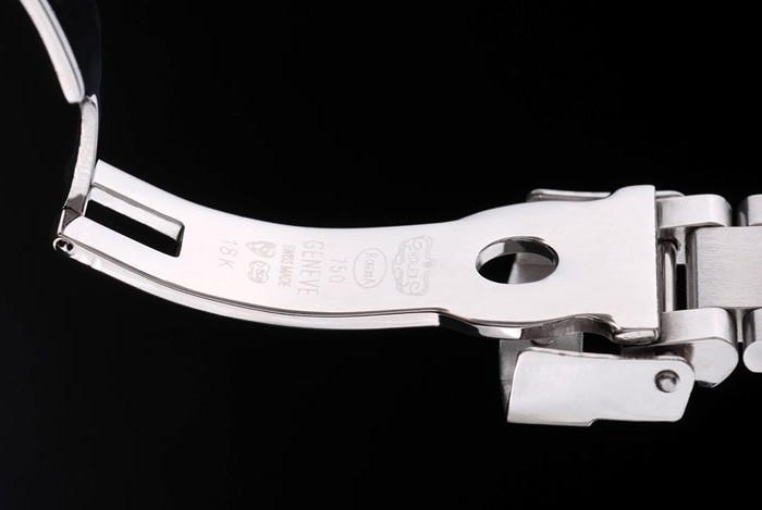 Crown: acero inoxidable pulido corona de calado con el logotipo de Rolex y dos coronas adicionales a cada lado de it