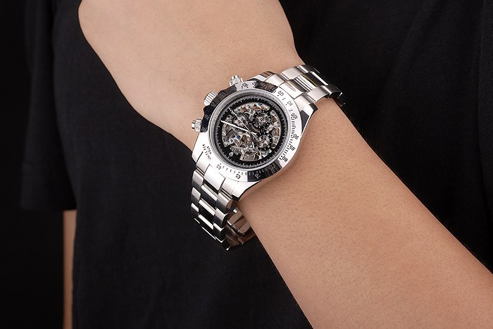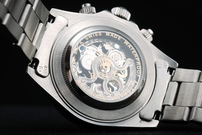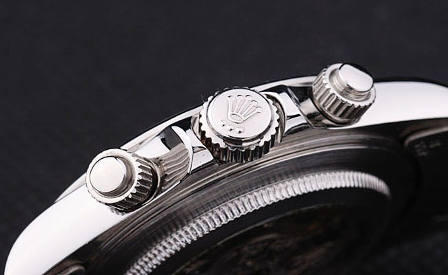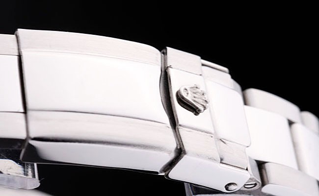 Crown: acero inoxidable pulido corona de calado con el logotipo de Rolex y dos coronas adicionales a cada lado de it