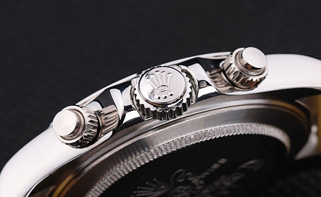 Crown: acero inoxidable pulido corona de calado con el logotipo de Rolex y dos coronas adicionales a cada lado de it