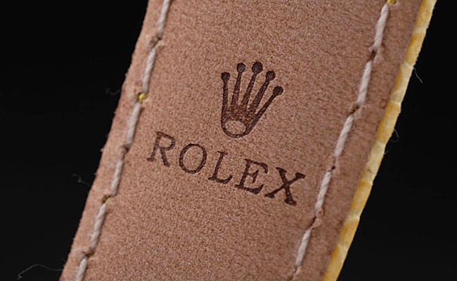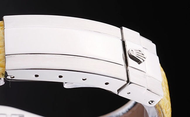 Bracelet de acero inoxidable: correa de piel de serpiente de color amarillo con Rolex y el logotipo grabado y cierre desplegable de acero inoxidable donde se presentan Rolex logo