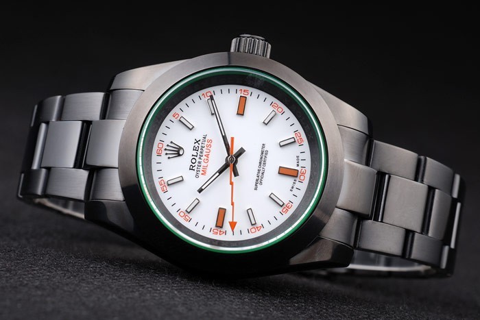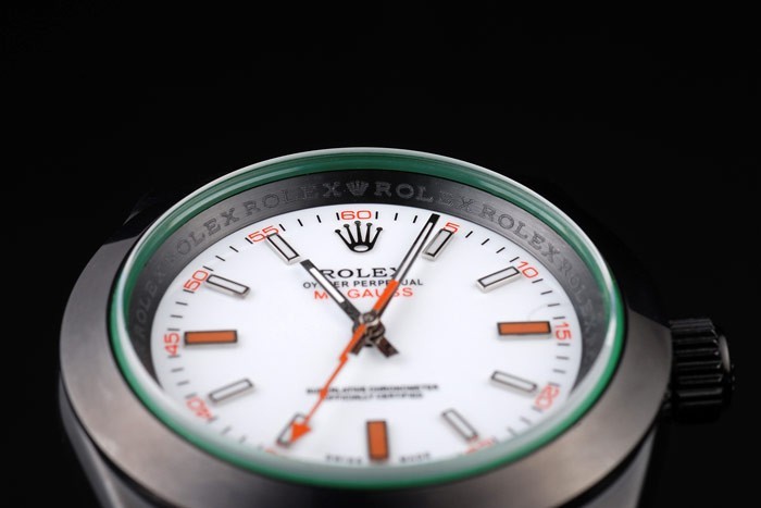Volver: Ion-plateado caso de empuje de acero inoxidable de nuevo con el verde Rolex logo stamp