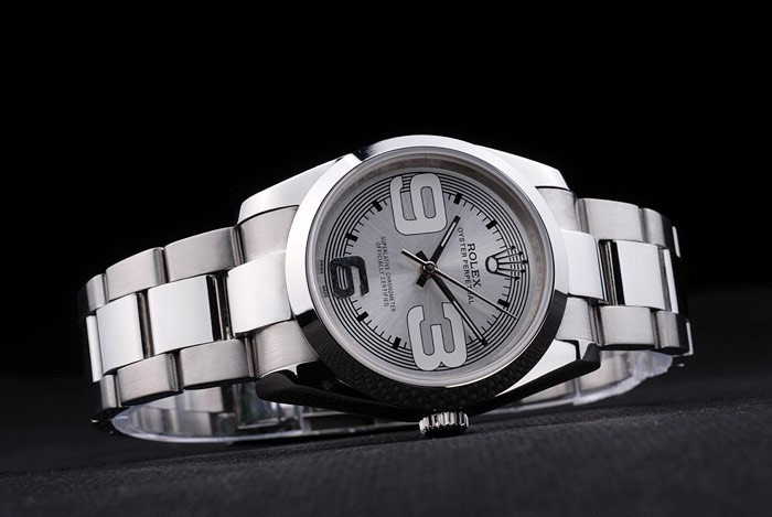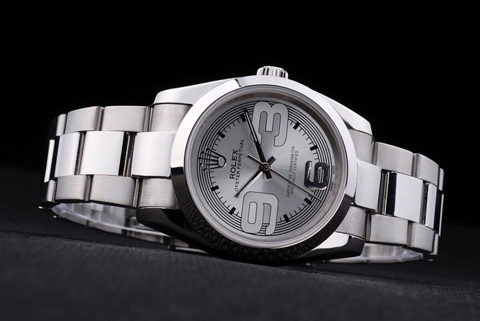 Bracelet acero inoxidable cepillado y pulido brazalete de eslabones de acero inoxidable con grabado Rolex doblar por la hebilla mostrando la longitud Rolex logo