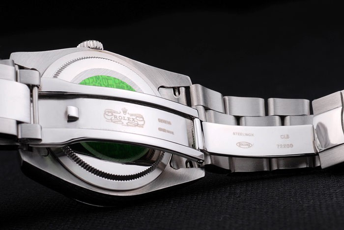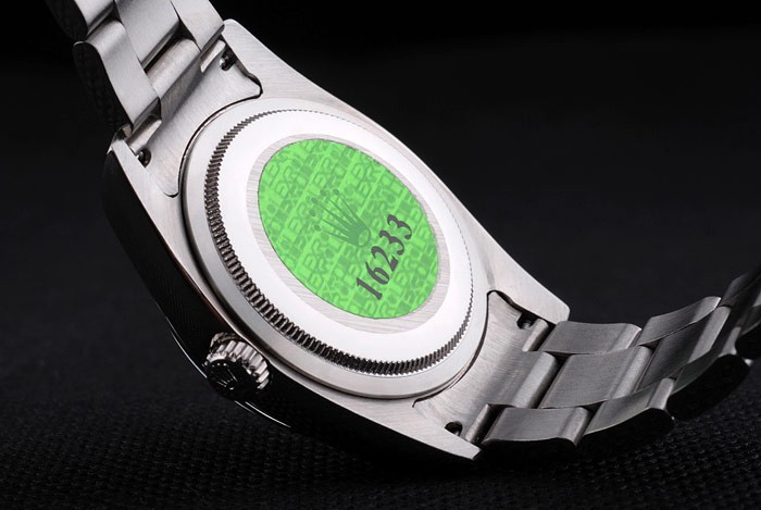 Volver: Acero inoxidable empuje en caso de vuelta con el verde de Rolex grabado stamp