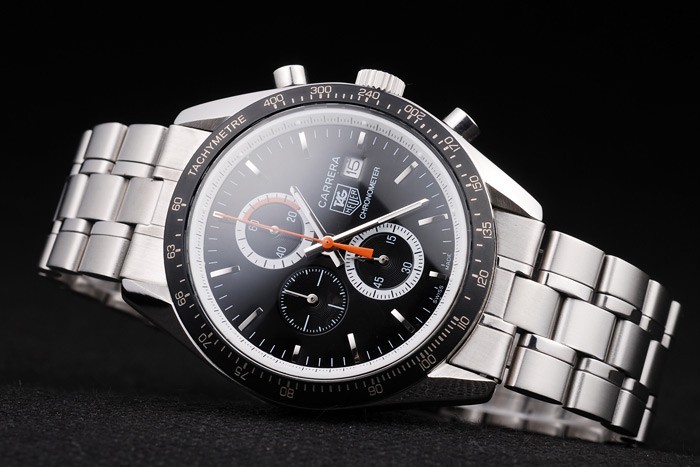 Crown: pulido corona calado de acero inoxidable con logo TAG Heuer más dos coronas adicionales, uno a cada side